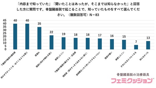 骨盤臓器脱を知っている人の症状の認知度(フェミクッション調べ)