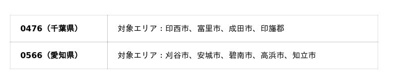 今回追加された市外局番と対象エリアは以下の通りです。