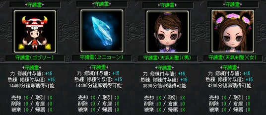 新たに4種類の守護霊が登場し、新装備「天神の肩甲/腰甲」も実装されました。