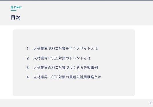 「2025年版 人材業界向けAI×SEOトレンドレポート」は、当社公式ウェブサイトより無料でご請求いただけます。この資料はAI化が進む現代において、人材業界でできるSEOでのAI活用法を徹底的に解説しています。