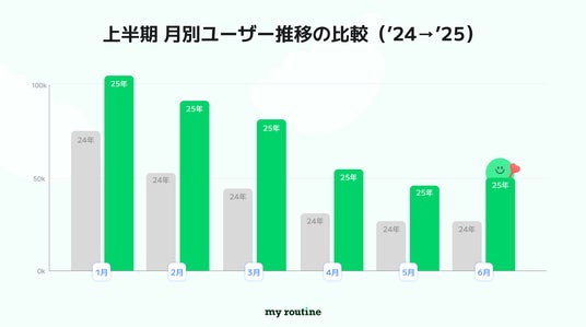 習慣管理アプリ「マイルーティン」、2025年上半期ユーザーデータ分析結果を発表 -「記録が実践へ、実践が変化を生む」