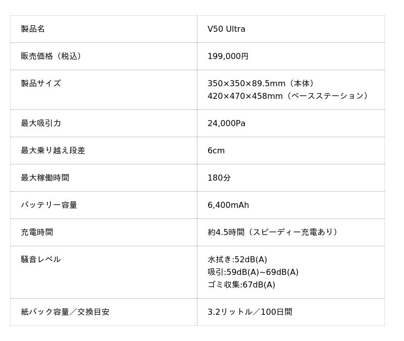 MOVA「V50 Ultra」のスペック詳細