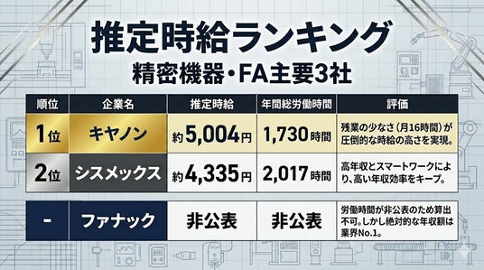 ~ファナック39.9歳・平均年収1,163万円、キヤノン残業16時間で時給5,000円超--「稼ぎ方の設計思想」が真逆の3社を一次情報で可視化~