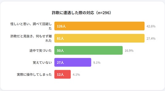 詐欺に遭遇した際の対応では、「調べて回避した」層が42.57%と最多を占めました。