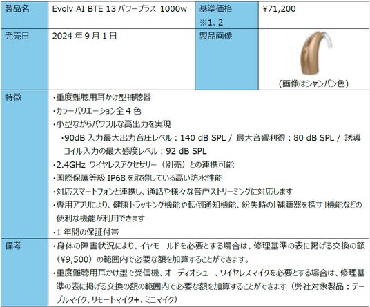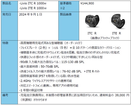 (2024年9月6日)- スターキージャパン株式会社(本社:神奈川県横浜市、代表取締役社長:西村啓司、以下 スターキー)は、障害者総合支援法対応補聴器に、高度難聴用 耳あな型補聴器(オーダーメイド)の充電式2器種と、重度難聴用 耳かけ型補聴器 1器種を加え、2024年9月1日より販売開始いたしました。