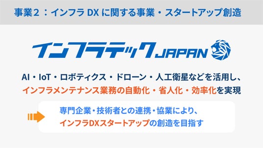 「インフラメンテナンス分野におけるM&A・事業承継」、「インフラDXに関する事業・スタートアップ創造」を推進