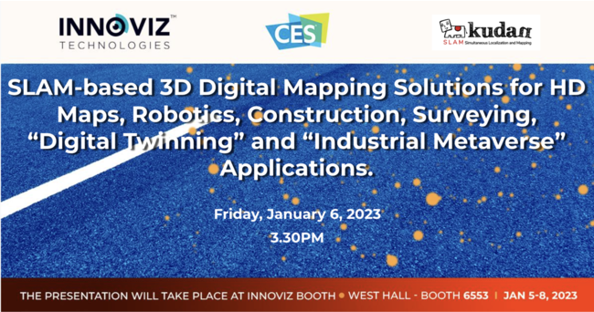 様々な機器に人工知覚/SLAM技術を提供するKudan株式会社(本社:東京都渋谷区、代表取締役CEO:項 大雨、以下 Kudan)は、来年早々に開催されるCES 2023(※1)に出展予定のInnoviz Technologies(※2、ナスダック:INVZ、以下 Innoviz)のブースにて、SLAMを用いたマッピングソリューションのプレゼンテーションを実施することをお知らせいたします。CES2023は、世界的に最も影響力のあるテクノロジーイベントで、2023年1月5日から8日(米国時間)まで開催されます。