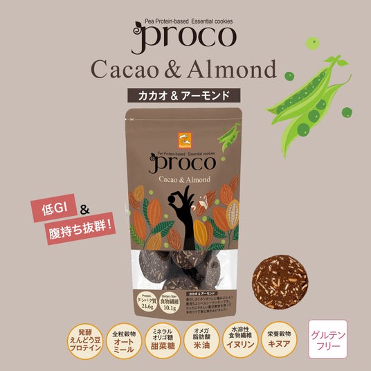 ニューロ・オン株式会社は発酵えんどう豆プロテインとオートミールをベースとしたプレミアムクッキー『Proco(プロコ)』シリーズを[Hug&Treat]オンラインショップで販売を開始いたしました。