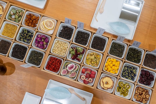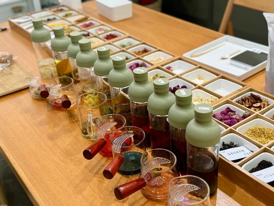 - ベースとなる茶葉を決めたら、それに合わせて花茶で香り付け。最後に甘みと酸味を果実で調整します。(グループのワークショップ場合、グループの皆さんが作ったブレンドティーを全員で飲み比べができます。その後に調整してより好みの味に仕上げていただけます)