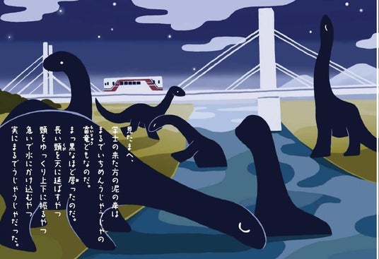 楢ノ木大学士は恐竜に出会います…。この物語は1934年(賢治が亡くなった翌年)に発表。それから44年後の1978年岩手県岩泉町茂師で、日本初の恐竜化石が発見され、モシリュウと名付けられました。地質や鉱物好きの賢治には、ありうる話と思っていたのかもしれません。