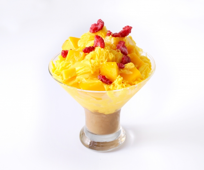 アルフォンソマンゴーピューレを使用した、やわらかな食感のかき氷。