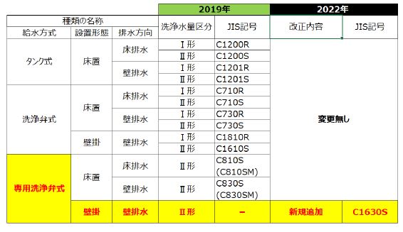 また、国際整合化とは別に大便器に関して壁掛形専用洗浄弁式大便器II形のJIS記号追加等がされています。