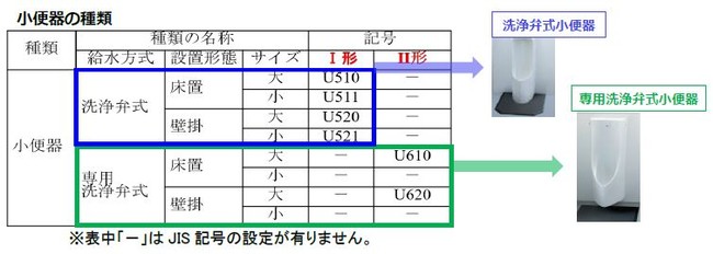 需要が多くなり、複数の製造業者で製造されている「専用洗浄弁式壁掛壁排水II形大便器」にJIS記号