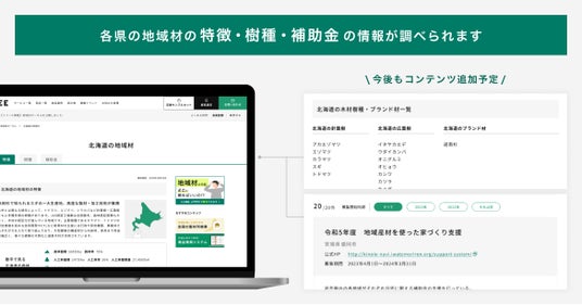 株式会社森未来(本社:東京都港区、代表取締役 浅野純平、以下:森未来)は1月24日(水)、木材情報プラットフォーム「eTREE」の新たなWebコンテンツとして、各地域で生産された木材情報を都道府県ごとにまとめた「地域材ポータル」の提供を開始いたしました。