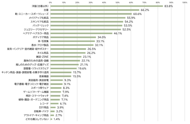 1.外出用ファッション消費は活発!8割超が「洋服」を購入、「古着」「靴・スニーカー・スポーツシューズ」の購入も6割超