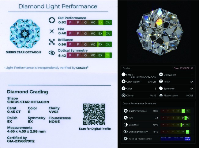 シリウススターオクタゴンの特徴的な輝きを視覚的に評価した、「ライトパフォーマンスカード」が付属しています。詳細は下記URLよりご覧いただけます。