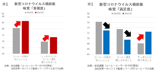 昨今の在宅勤務の増加など生活様式の変化により、家庭内でのコーヒーの飲用頻度が増えたことで、本格的なコーヒーを求めるなど味覚感度の高い消費者が増加傾向にあり、また、コーヒー飲料の容器別における味覚重視度、満足度にも変化が生じてきている※¹と当社では考えております。