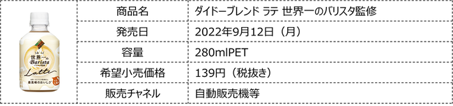 ダイドードリンコ株式会社は、2022年秋冬の新商品として、「ダイドーブレンド ブラック」、「ダイドーブレンド ラテ 世界一のバリスタ監修」を9月12日(月)よりそれぞれ発売いたします。