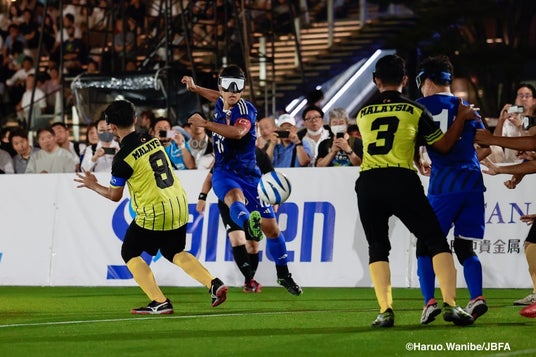 ブラインドサッカーは、視覚に障がいのある選手と晴眼者が互いに協力をし、チームワークや