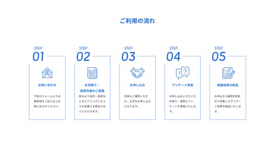 申し込み完了から最短5営業日、最小500名からアンケート調査が可能です