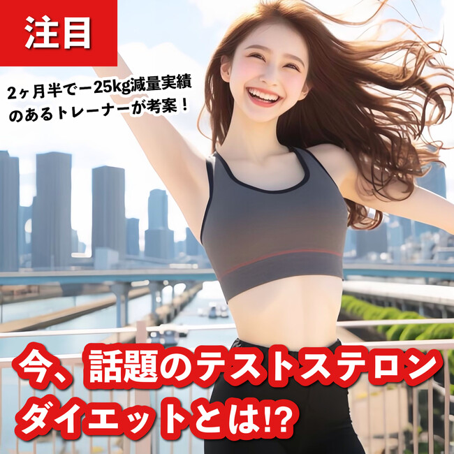 テストステロンダイエット(R)という言葉を聞いたことがあるでしょうか?このダイエット法は、男性ホルモンの一種であるテストステロンを活用して、筋肉を増やし、体脂肪を減らす方法です。※女性の方が男性のようになることはないので心配は不要です。テストステロンは、女性にも必要なホルモンで、筋肉を増やし、脂肪燃焼に期待ができる効果があります。