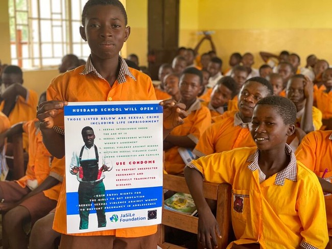 NPO法人アラジで実施する奨学金給付支援は、女の子達が再び学校に通うことができるための支援である一方、根本的な解決策として、望まれない若年妊娠そのものを減らす事を目的とし、男性側が正しい性知識のもと、女性と接することができる意識改革の起点として、男子中高生への性教育プログラム「ハズバンドスクール」の提供を、2021年より開始しました。