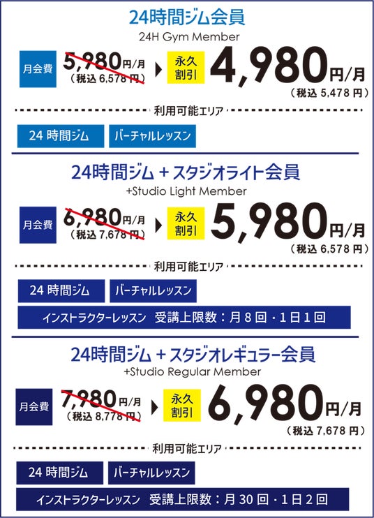 フィットネスをより身近に感じていただくためのバリュープライスです。