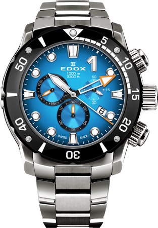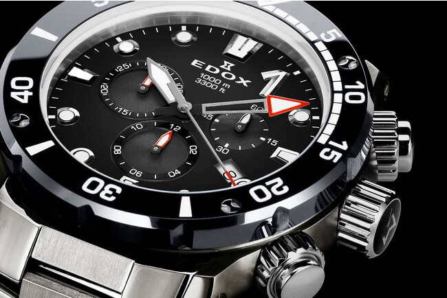 最高速度が200km/hを超え、海のF1とも称されるパワーボートレースのダイナミックかつラグジュアリーな世界観を投影した、エドックスのフラッグシップコレクションです。厚さ3.5mm以上の重厚なセラミックベゼルや300~1000m防水を標準スペックとして備え、素材や仕上げへの一切の妥協を許さず審美性を追求することで、タフネスとエレガンスを両立しています。