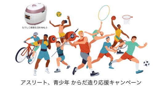 アスリートの皆様、青少年をお持ちのお母さまお父さま。ぜひ、これを機に美と健康づくりのための炊飯器「なでしこ健康生活(R)」をご活用ください。