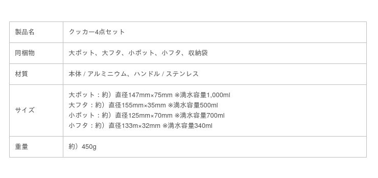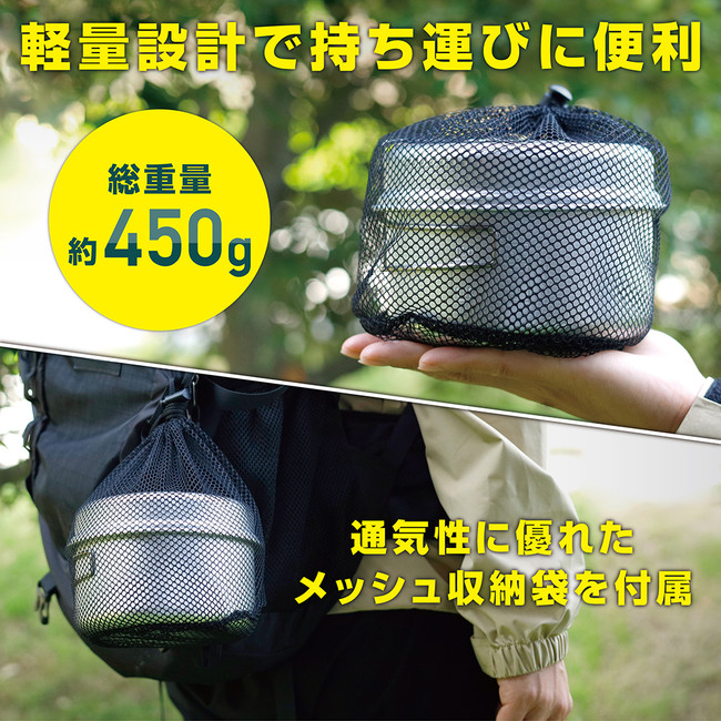 ~軽量設計で、クッカー4点が一つにまとまるため、ソロキャンパーの方や荷物を減らしたい方におすすめの商品です~