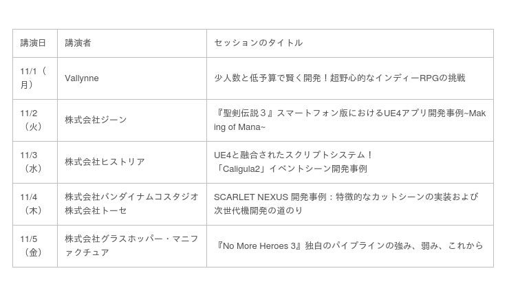 2014年から続いてきた公式Unreal Engine勉強会「Unreal Fest」は今年もオンラインで開催します。セッションは11月1日(月)~11月5日(金)まで毎日20時からゲームとノンゲームセッションが一講演ずつ公式Youtubeチャンネルでライブ配信します。ユーザ参加型企画「アンリアルクエスト2」は、「Unreal Fest」開催開始の11月1日(月)~11月6日(土)の期間、Discordチャンネルで開催、最終日には公式YouTubeチャンネルでライブ配信も行います。