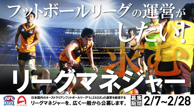 一般社団法人日本オーストラリアンフットボール協会(以下、AFL JAPAN)は2月7日(月)、2022年度のA.LEAGUEマネジャーを公募することを発表しました。
