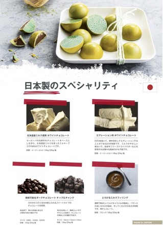 ●「スペシャリティ」は、贅沢なカカオの風味をもたらすハイカカオ、北海道ミルクをつかったホワイトチョコレート、ベルギー製チョコレートや、より健康的なココアパウダーなど、高付加価値な製品をご紹介しています。