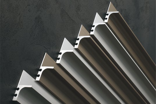 2つの孔をもつ Verta H2 は、ジョイントピンによって高精度の接合を実現する。突合せのズレは最大でわずか0.2mm。床がフラットなら、どんなに長く継ぎ足しても、どこまでもシャープな直線で壁のあしもとをすっきりと見切ることができる。