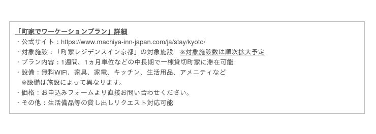 日本の伝統家屋に特化した、在宅ワークやサテライトオフィスに最適な「町家でリモートワークプラン」と中長期滞在向け「町家でワーケーションプラン」2つの新サービスを開始。