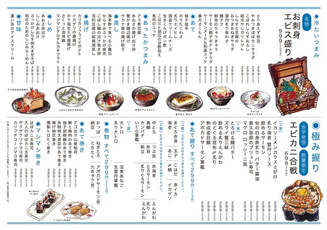 株式会社シーズン2(東京都渋谷区)は、東京恵比寿・神戸三宮の人気店「スシエビス」に続く姉妹店『サカナエビス』を、2022年1月19日大阪難波の人気エリア「裏なんば」にオープン致します。