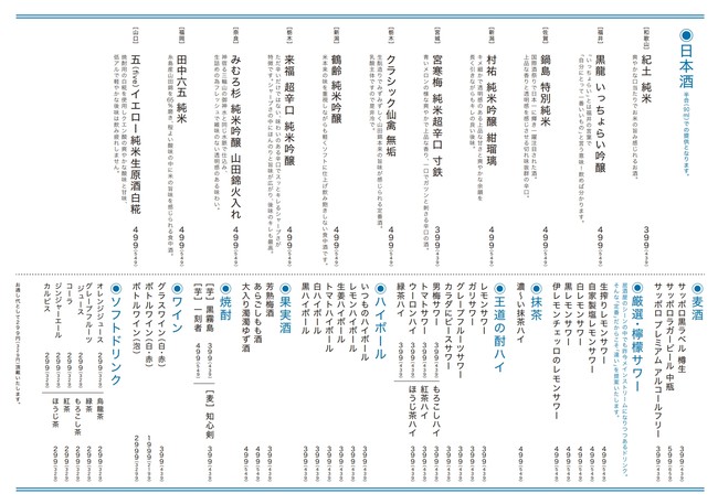 ・別途、お通しとお料理お一人様最低2オーダー制とさせていただきます