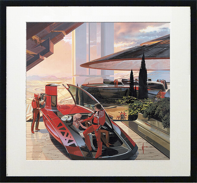 クロノアートは、原画に限りなく近い色調やタッチを忠実に再現し、繊細な階調表現を可能とする高精細印刷技術プリモアート(R)を使用した複製画を、シド・ミード氏公認で提供するブランド名です。コレクション性の高いクロノアートRも、扱いやすいクロノアートSも、いずれもオーナーの人生を彩る一枚となってくれることでしょう。
