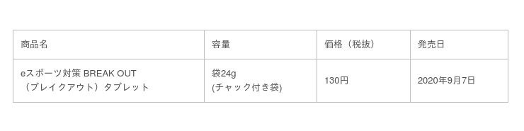 赤穂化成株式会社(本社:兵庫県赤穂市、代表取締役社長:池上良成)は、2020年9月7日(月)より、ゲームの合間や対戦中の栄養補給に最適な、国内初のeスポーツプレイヤー向けタブレット菓子「eスポーツ対策 BREAK OUT(ブレイクアウト)タブレット」を全国のスーパー、ドラッグストア、オンラインストアなどで新発売します。