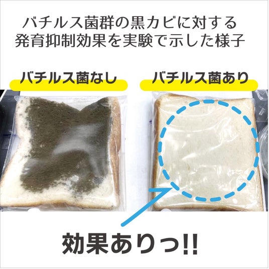 弊社商品のカビを抑えるビーズの秘密は、バイオベンチャーが開発に成功したバチルス菌技術です。バチルス菌は天然由来の成分で作られており、水と反応すると覚醒し、カビ菌を抑制し長く効果を出し続けます。強い薬剤を使用していないので、だれでもどこでも安心してご使用いただけます。外部研究機関においてカビ抑制効果を検証、実効性も確認済みです。