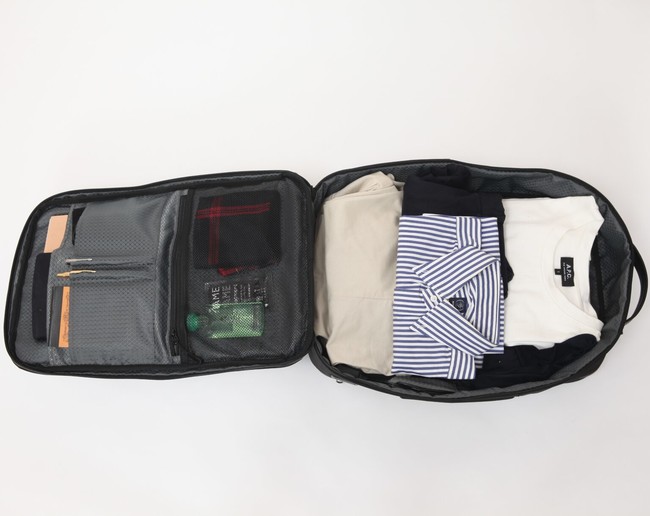 容量は35リットルで、荷物がたっぷり入る大きさ。2~3泊の出張時の荷物も、ストレスなく収納できます。