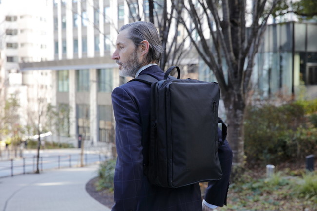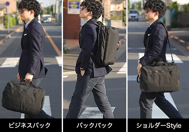 「ビジネスバック・バックパック・ショルダースタイル」の3WAYでの使用が可能なビジネスリュックです。荷物の量やシーンに応じて、最適な持ち方を選択できます。
