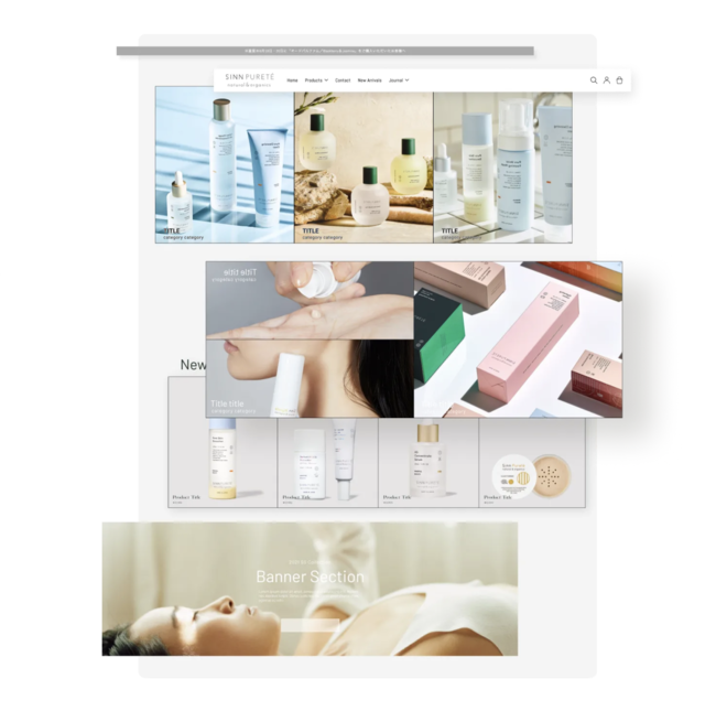 商品のセクションや、バナーのセクションなどを、自由に追加したり順番を入れ替えたりすることができ、よりオリジナルなデザインのECサイトを構築することができます。
