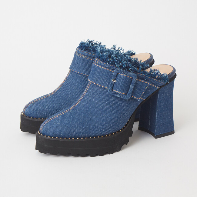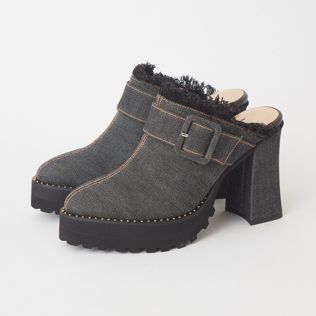 今シーズン大注目のデニムがトゥクローズミュールで登場。ハイストームとスタッズが施された底回りでエッジを効かせたアイテムに。ざっくりとしたステッチワークと履き口のフリンジ感が程よくカジュアルダウンしてくれます。