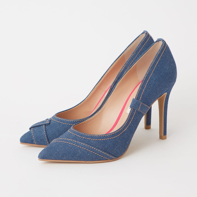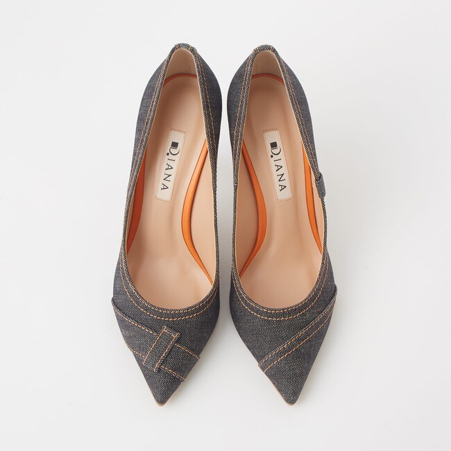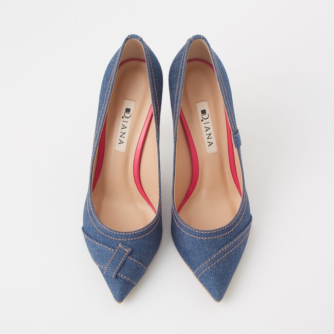 ダイアナで人気の美シルエットパンプスにデニム素材載せたアイテム。すこし粗めにかけたステッチワークやベルトループデザインを取り入れ、カジュアルさもプラス。。さり気なく見える中底のビビットカラーも目を惹きます。