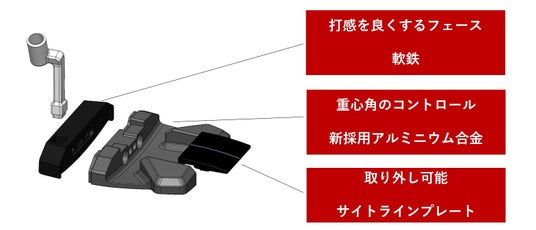 素材 :ボディー‐アルミニウム合金、フェース‐1025カーボンスチール(軟鉄)