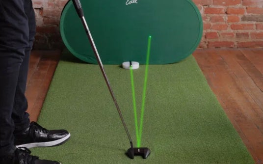 「方向性」のフィッティングでは独自開発したレーザー・ミラーを使用しながらフェースがターゲットに対して真っすぐ向けるようにヘッド・サイトラインプレート・シャフトの長さ・ライ角の調整を行っていきます。