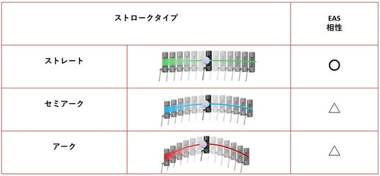 ■特徴1:再現性を高めるストロークタイプ別 重心角設定