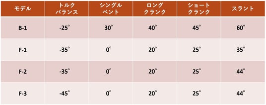 ・5つのホーゼル(ロングクランク、ショートクランク、シングルベント、トルクバランス、スラント)