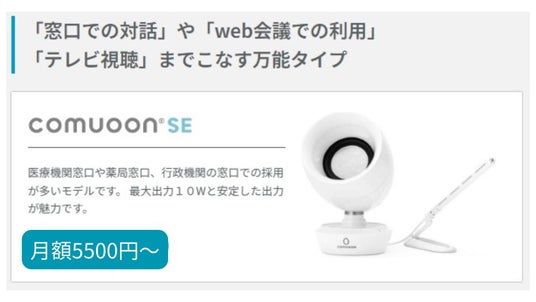 ユニバーサル・サウンドデザイン株式会社(本社:東京都港区、代表取締役:中石真一路)は、対話支援機器「comuoon(R)(以下、コミューン)」のレンタルサービス「comuRent(コミュレント)」を2024年12月より開始いたします。月額3,300円~のレンタル代のみで、初期費用を抑えてコミューンを導入いただけます。レンタルサービスのご利用により、ライフスタイルの変化に応じた機種の使い分けや、最新モデルの利用が可能となり、医療機関や介護施設、公共施設や企業の窓口、及び個人利用の拡大を見込んでおります。